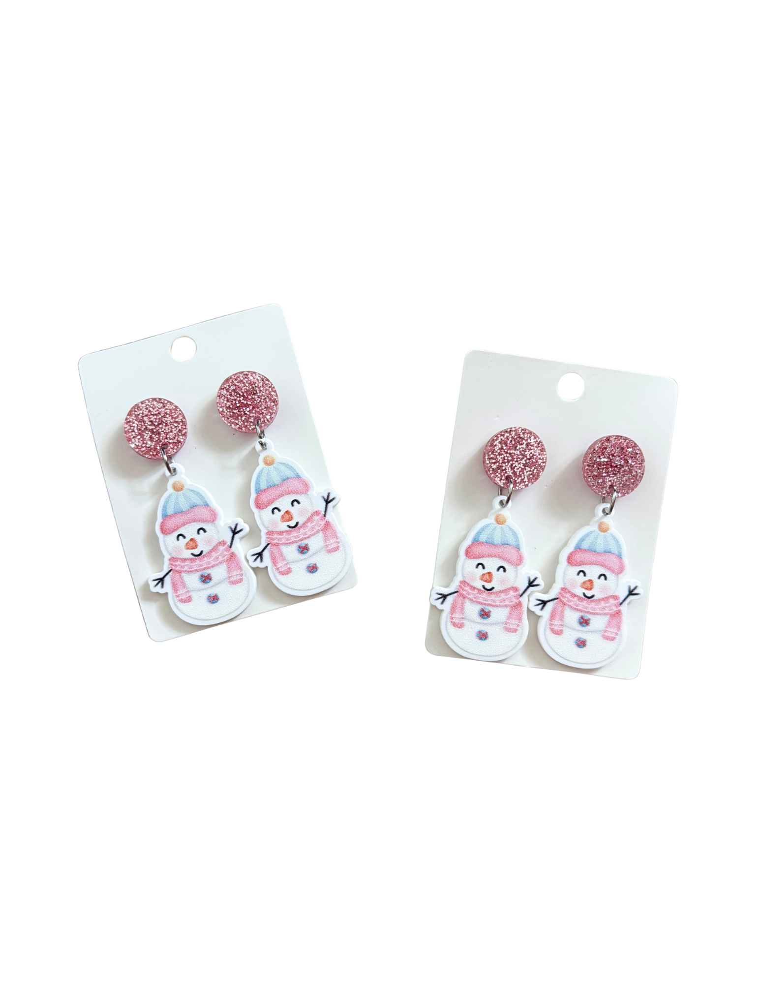 Brighten up your winter style with these playful Pink Snowman resin earrings! Their cheerful design and subtle pink color make them a fun and festive accessory perfect for spreading holiday joy.