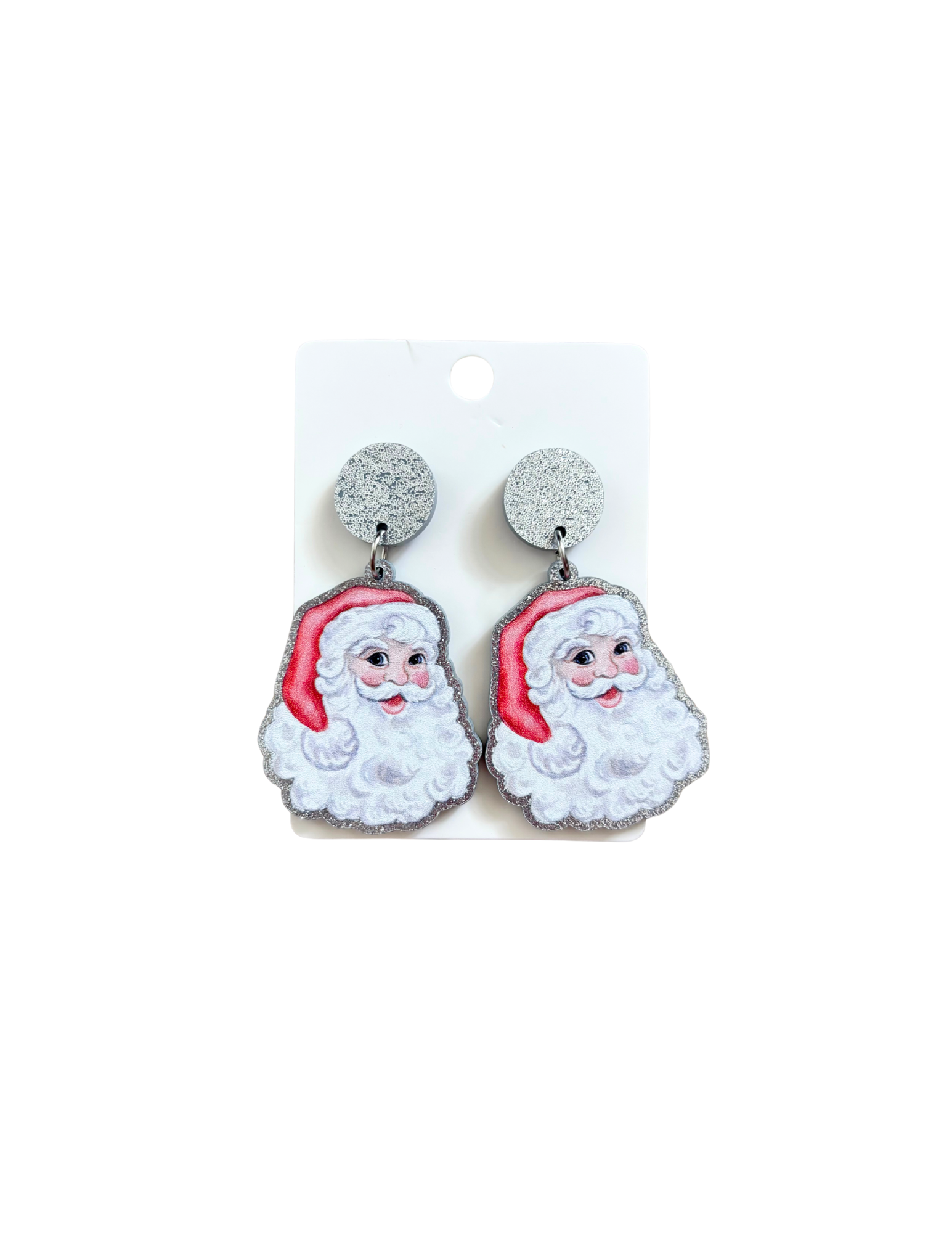 Add a nostalgic twist to your holiday look with these playful Santa resin earrings. Featuring a charming retro Santa design, they bring festive fun and a dash of whimsy to any outfit.